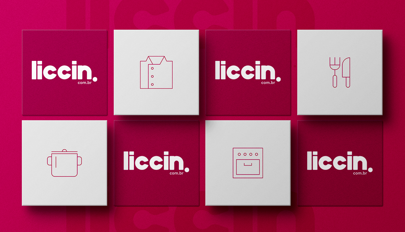 A Liccin. nasceu com o objetivo de ser um marketplace especializado em artigos para cozinhas industriais, sendo a primeira opção de compras para os profissionais da área. Como briefing, foi solicitado o desenvolvimento do branding, identidade visual, layout da plataforma e lançamento da plataforma para o mercado. Após a análise da concorrência e entendimento do mercado, iniciamos o processo de construção da marca, inspirado em sua própria essência: facilitar a relação entre quem procura e quem quer ser encontrado. A construção do layout visou apresentar traços simples, porém sólidos em sua mensagem, para tornar a leitura fácil e favorecer memorização e fixação de marca, transmitindo “suavidade” desde seu primeiro impacto e gerando empatia com os clientes. Todo o conjunto objetiva comunicar que Liccin. significa facilidade para encontrar o que se procura, uma ponte que leva o cliente ao seu objetivo de maneira amistosa, prática e sempre bem-sucedida. Para melhorar a experiência de comunicação, trouxemos a iconografia como ferramenta para representar as categorias de produtos da Liccin., tendo como principal objetivo guiar o cliente na busca pela informação e tornar a linguagem mais amigável. Além disso, os elementos trazem à marca contato com o universo lúdico, o que promove a interação com os clientes de forma prazerosa. A cor carmim escolhida para a marca traz características fortes, representando otimismo, alegria e espontaneidade, além de ser poderosa e monopolizadora de atenções. Vibrante e ao mesmo tempo suave, a cor também representa equilíbrio ao fundir significados da vida moderna, priorizando o bem-estar. Desenvolvemos o universo Liccin. com base no conceito “Conectando você a sua cozinha”, e como campanha, o slogan “Liccin. Cozinha completa é assim.”, potencializando a informação: na Liccin., você encontra tudo que precisa para a sua cozinha.